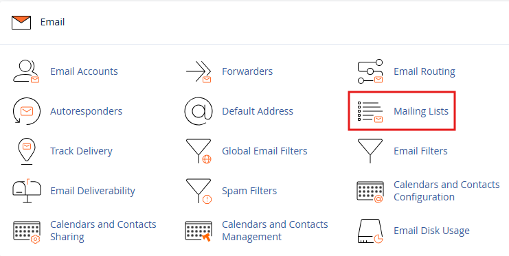 Mailing lists allow you to use a single address to send mail to multiple email addresses. cPanel handles mailing lists with the third-party Mailman application