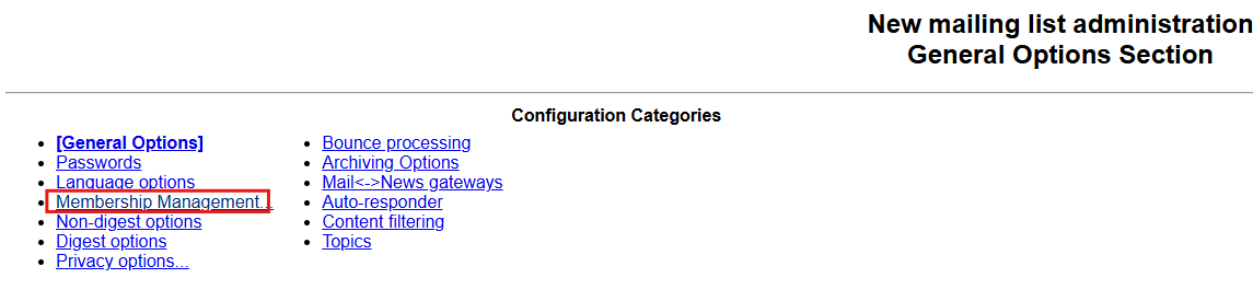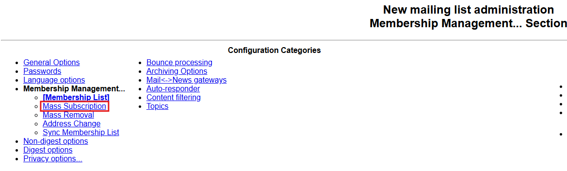 Private : The administrator must approve subscriptions, and the Mailman interface does not display the mailing list.