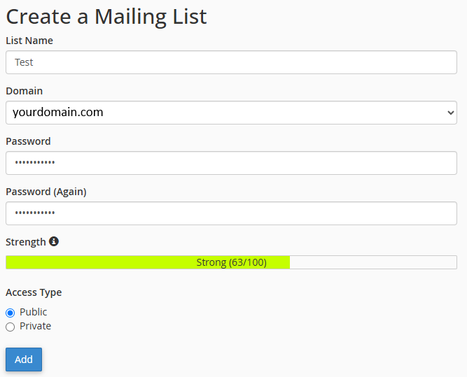 After the mailing list has been created, you can simply send an email to the list address (for example, listname@yourdomain.com).