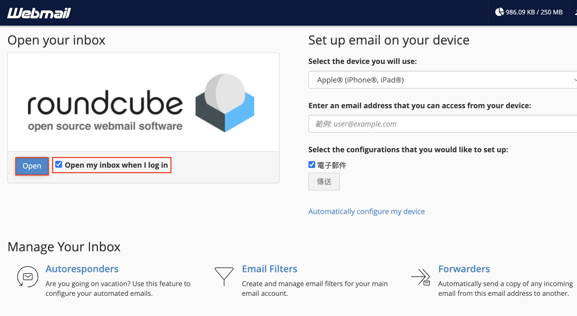 當您下次登入 Webmail 時,系統將會直接帶您進入收件匣頁面。