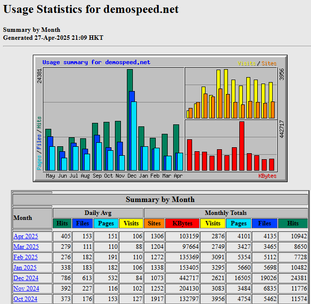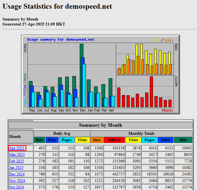 這是Webalizer主頁面,閣下可以於此選擇不同方式查看訪客訪問網站的資訊
