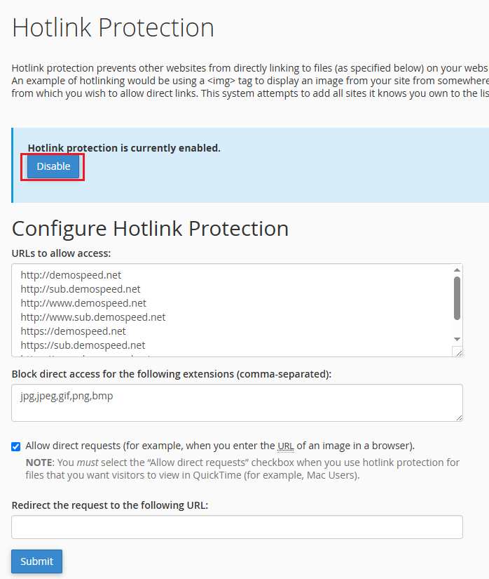 6) 如要停止此保護,點擊禁用 You can click "Disable" to stop the Hotlink protection.