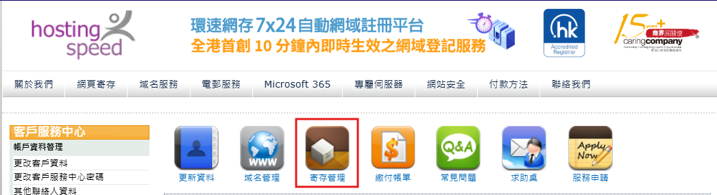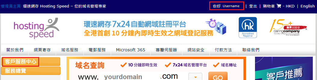 或按左方Hosting Speed logo下的"客戶服務中心"