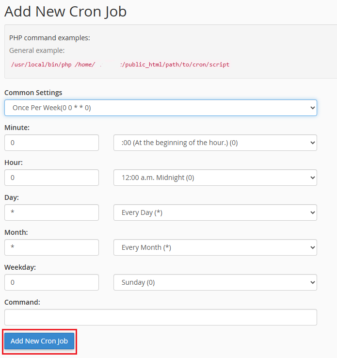 When ready, click Add New Cron Job