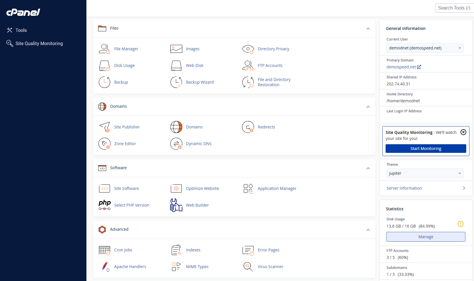 現在您已經登錄到cPanel,並可以管理您的電子郵件、資料庫及其他設置。
