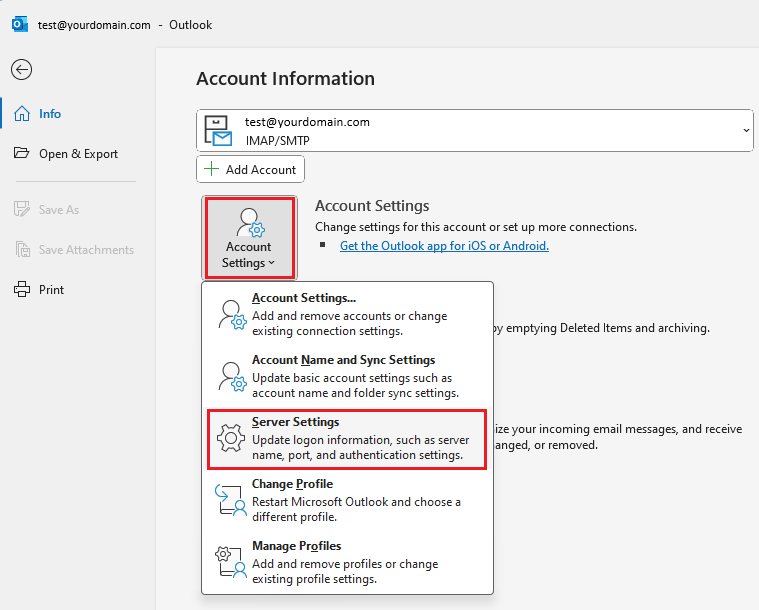 Click Account Settings -> Server Settings