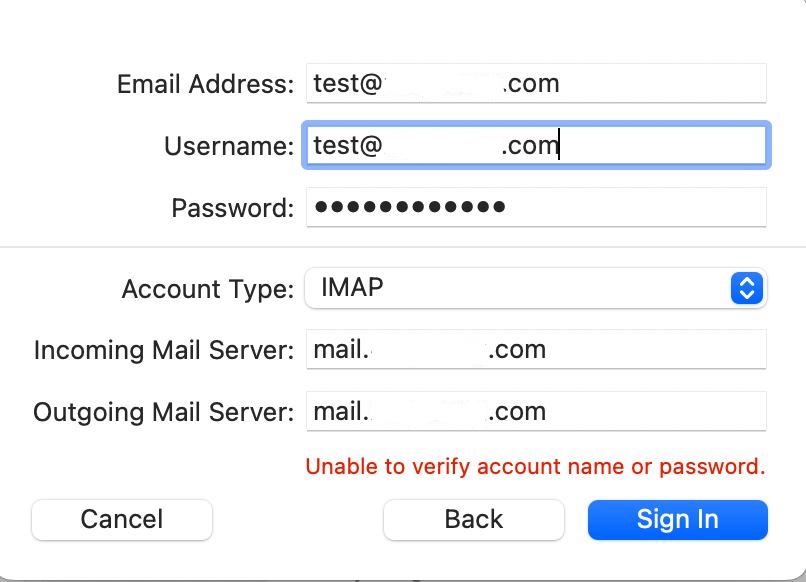 Please choose account type IMAP or POP, also enter below data, then click "Sign in":