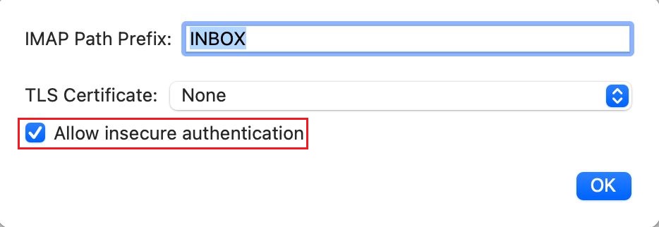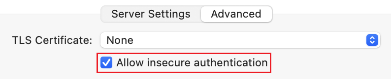 選擇 "允許不安全的認證" Tick "Allow insecure authentication".