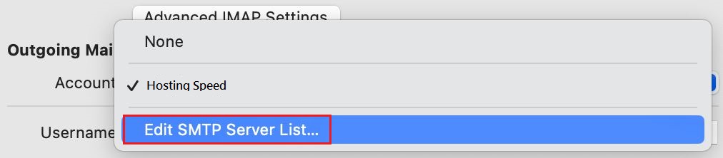 ii. 之後打開 "SMTP 帳戶"選單,選擇"編輯SMTP 伺服器列表…"