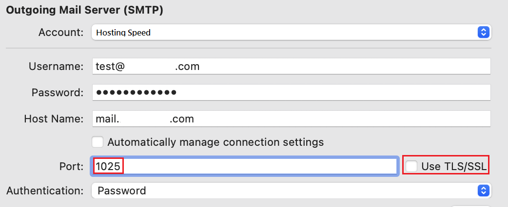 vi. 確保顯示傳輸埠 1025 並不要勾選使用 TLS/SSL。 Make sure it show port 1025 and untick sue TLS/SSL