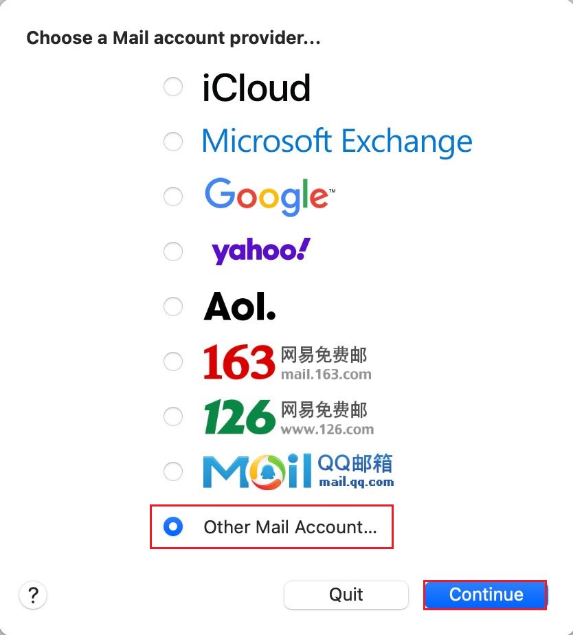 4. 選擇 "其他郵件帳戶",按"繼續"。