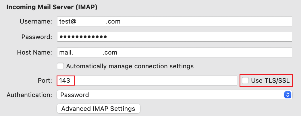 不要選擇 "使用TLS/SSL" Do not Select "Use TLS/SSL"