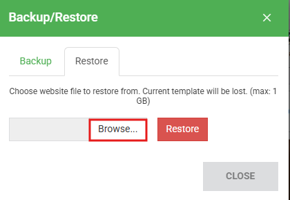 2. 點擊"回復"分頁,然後選擇"瀏覽"。Click Restore tab > "Browse".