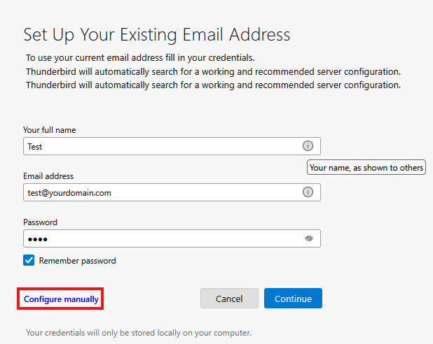 2. 請填寫你的名,電郵及密碼。填寫後請點選"手動設定"