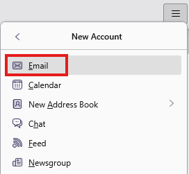 Open Thunderbird, click Menu button at the top right hand corner -> New Account -> Email