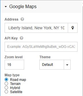請檢查你是否已經加入了地圖的API key (點擊地圖插件後,右方就會出現設置內容)。