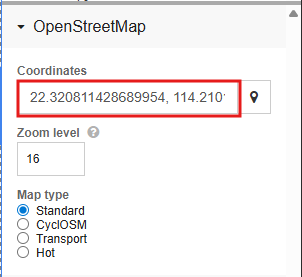 - 先找到該地址的座標,如果是Google Map的話,在地圖上於該確切位置按右鍵,會出現一個彈出式選單,點擊座標即可複製