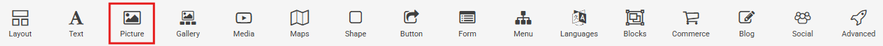 - 於web builders menu中點擊"圖片"工具。 Click "Pictures" in widget bar.