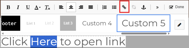 Highlight the text which you make as a link. Press the Link icon
