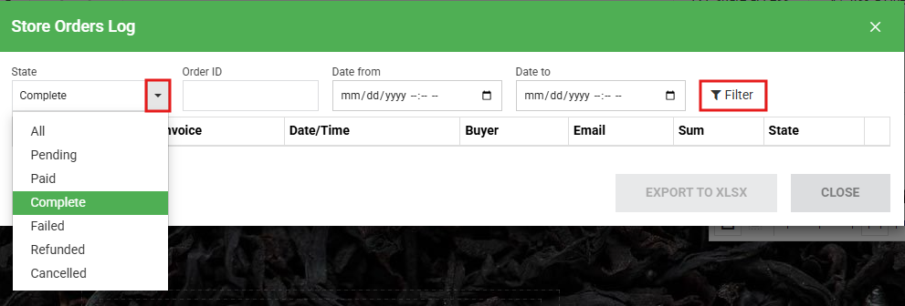 Use "filter" to view orders with different status.