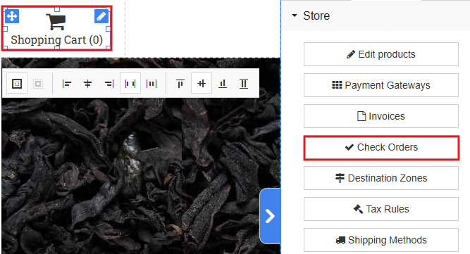 Click the shopping cart, then in the right-hand settings go to > Store > “Check Orders”.