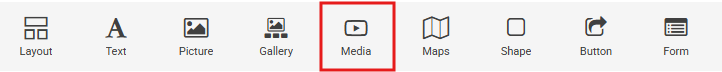 You can add a video or audio to your website with "Media" tool.
