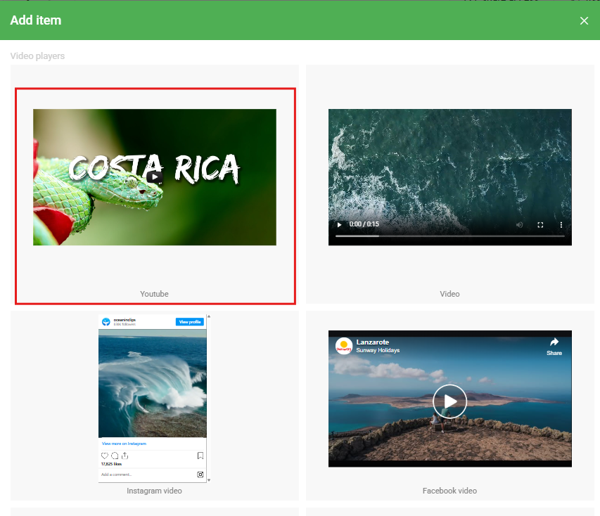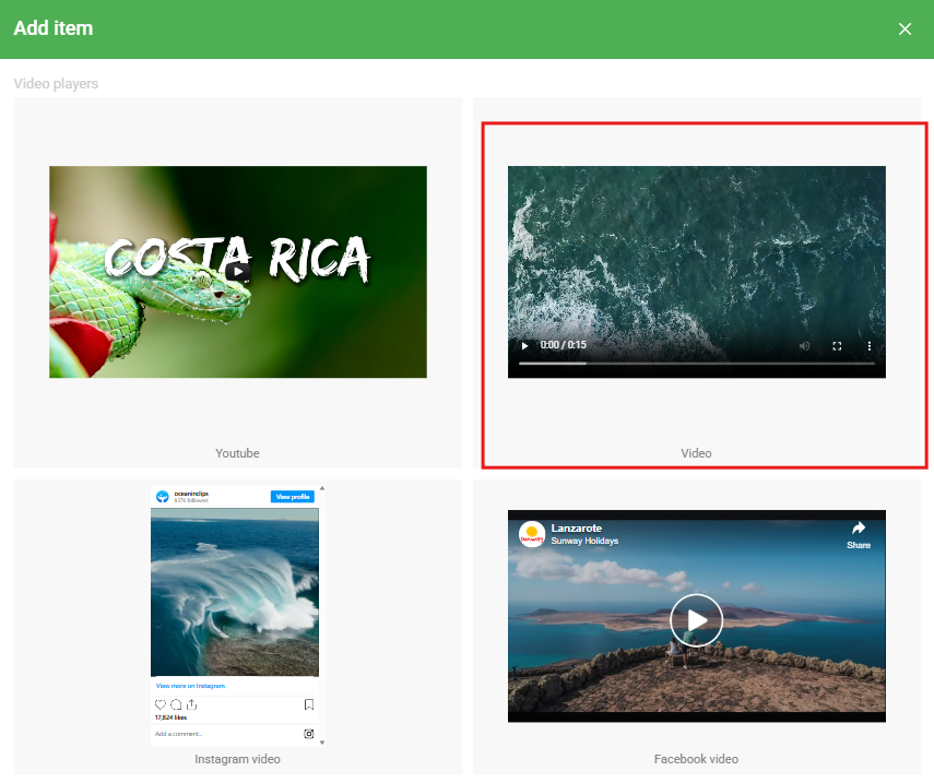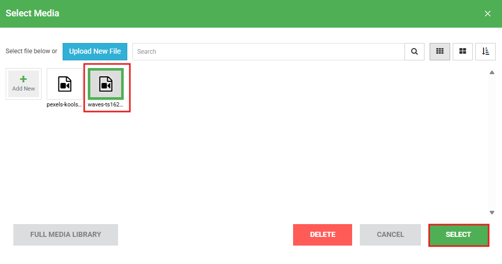 Select an existing video or upload a new one, then click Select.