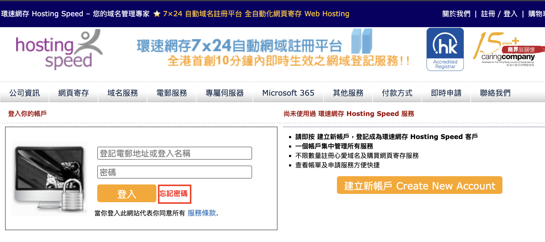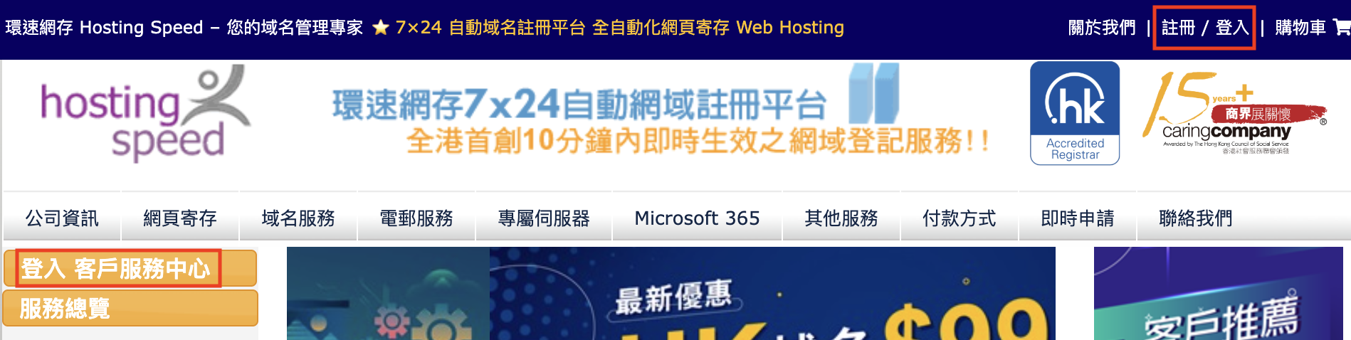 或按左方Hosting Speed logo下的"登入客戶服務中心"