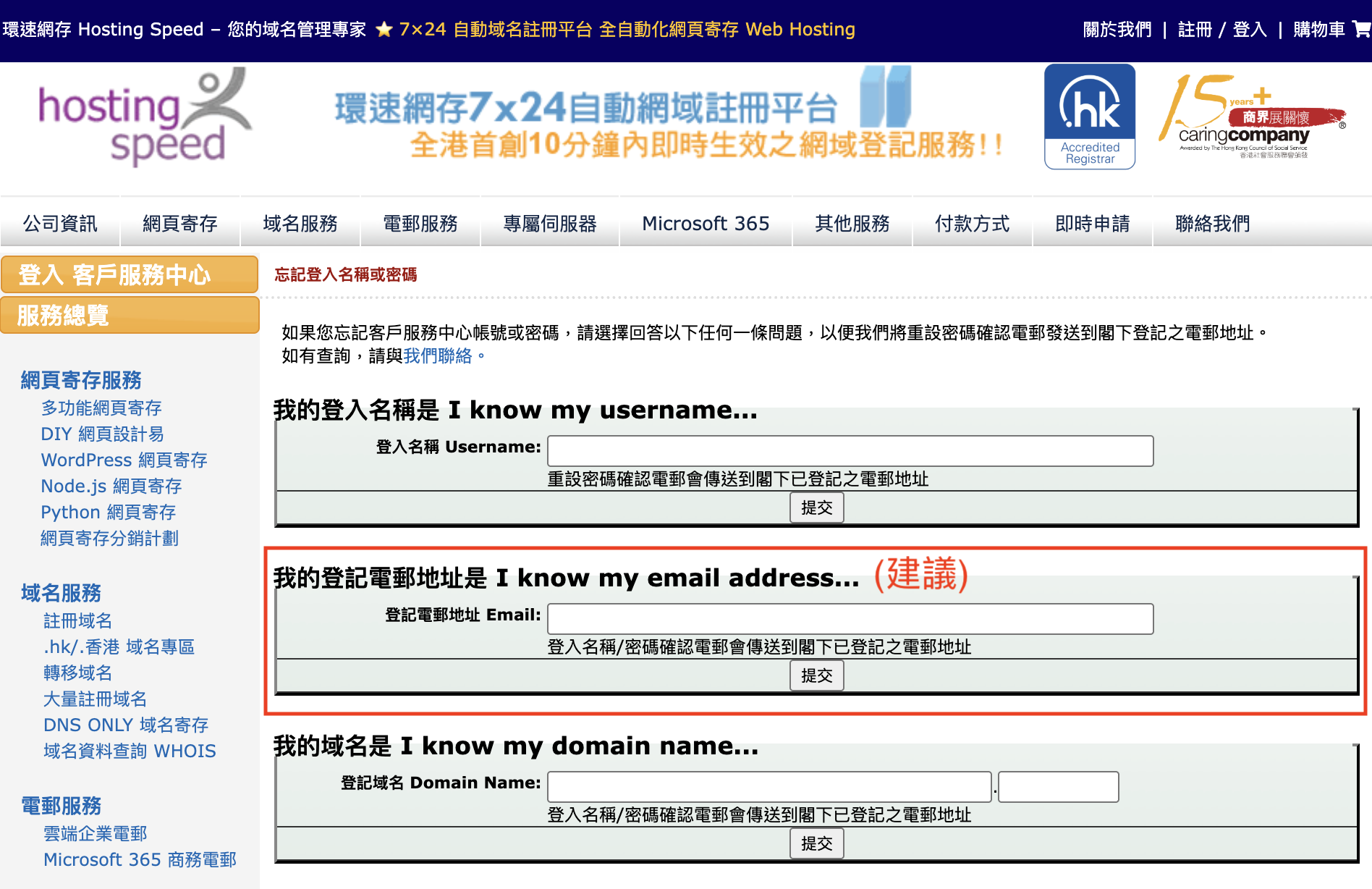 *建議客戶輸入曾收取Hosting Speed 帳單的電郵地址。 We suggest you to input the email address you had received our email before.