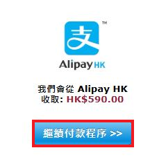 2. 點擊 "繼續付款程序"按鈕